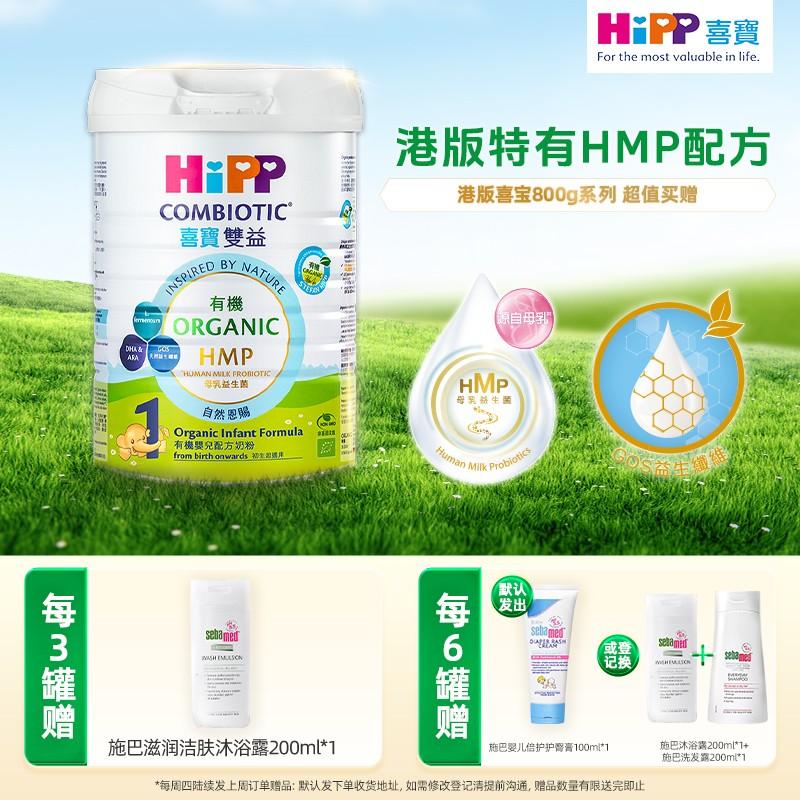 保税直供 【买赠】港版HiPP喜宝有机双益HMP婴儿配方奶粉1段800g 0-6月