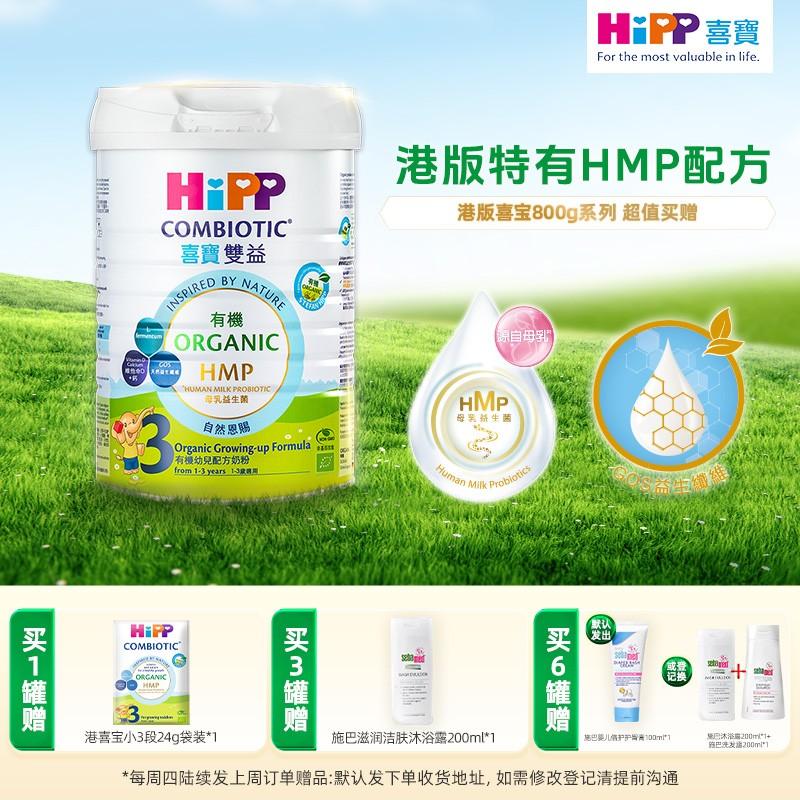 【买赠】港版HiPP喜宝有机双益HMP幼儿成长奶粉3段800g 12-36月