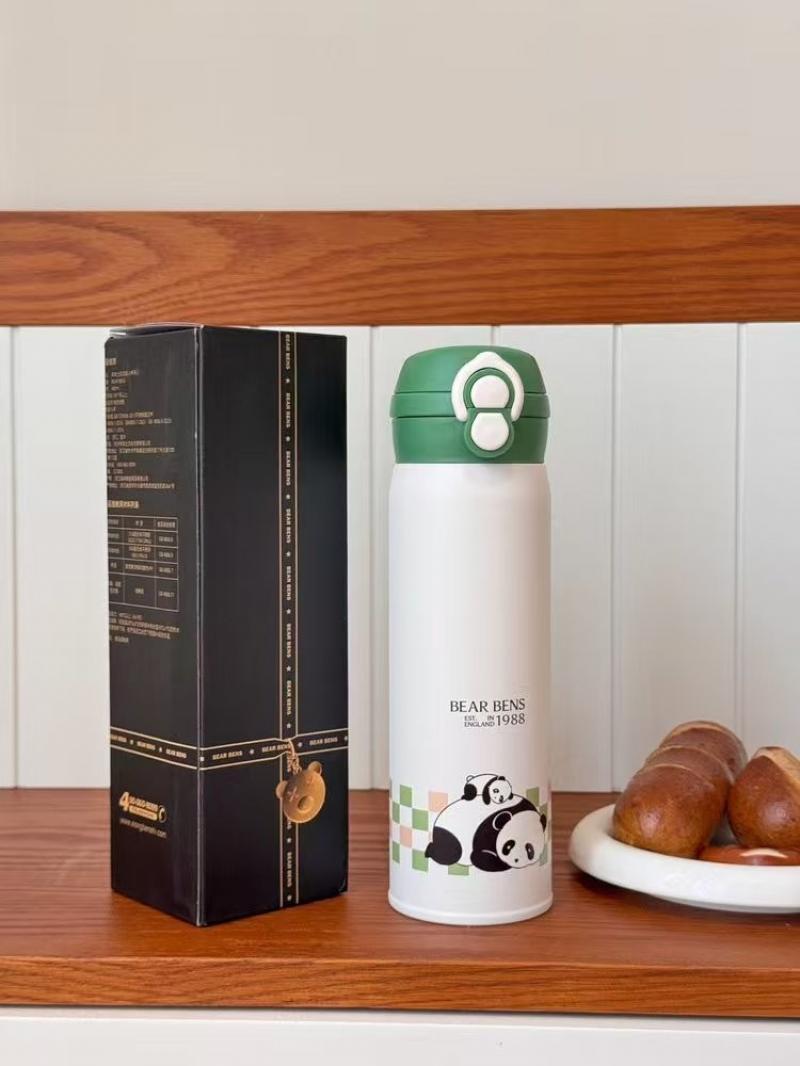 熊本士双饮轻心保温吸管杯316不锈钢480ml 清新熊宝